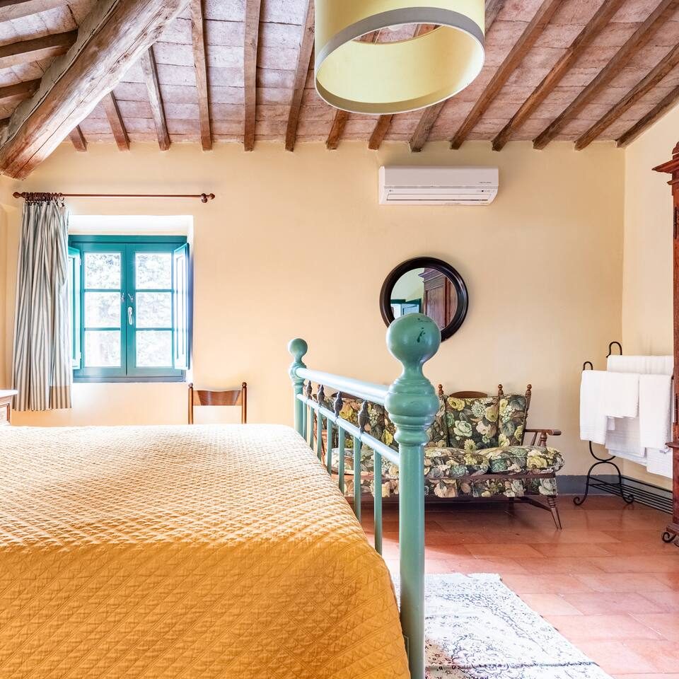 Queen size bed, ancient wardrobe, sofa where you can relax and read.